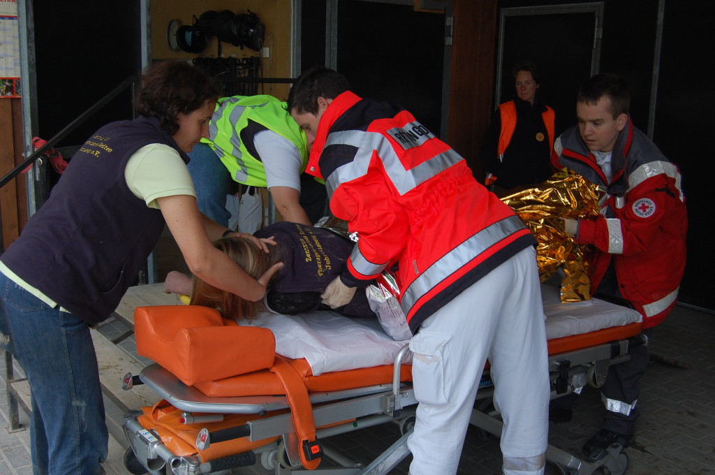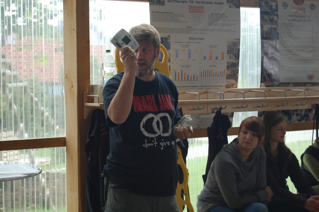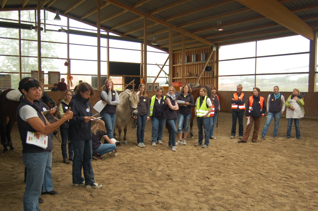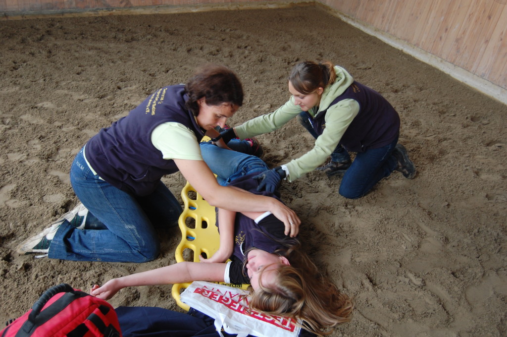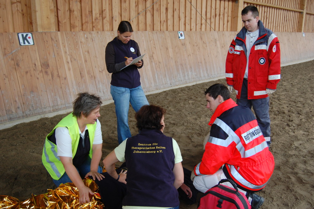 „Für eine Einrichtung wie die unsere ist es enorm wichtig, solche Übungen regelmäßig durchzuführen“, macht die Vereinsvorsitzende Marion Drache deutlich. „Im Therapeutischen Reiten behandeln wir vielfältig und schwer erkrankte Menschen, die wegen ihrer Grunderkrankungen jederzeit, also auch während einer Therapie, gefährdet sind, in eine akute Notfall-Situation zu kommen. Zum Beispiel durch Herzinfarkt, Schlaganfall, Herzrhythmusstörungen oder ähnliches. Auf eine solche Situation zumindest ein Stück weit vorbereitet zu sein ist Ziel der Übung. Sie soll den Beteiligten die Komplexität der erforderlichen Maßnahmen bewusst machen und gleichzeitig Hemmschwellen abbauen. Dies bringt dem Patienten zusätzliche Sicherheit und kann ihm unter Umständen das Leben retten.“ Auch in ihrer Funktion als Vorstandsmitglied des Deutschen Kuratoriums für Therapeutisches Reiten e.V. (DKThR) hat sie sich dem Thema Qualitätssicherung verschrieben: „Empfehlenswert ist eine solche Übung einmal jährlich. Bisher ist von Seiten des Gesetzgebers für die Zulassung zur Reittherapie jedoch lediglich der Nachweis eines Erste-Hilfe-Kurses erforderlich. Dies erscheint uns allerdings nicht ausreichend.“ Das Fernziel der Vereinsvorsitzenden ist eine umfassende ISO-Zertifizierung, an der sich alle Therapiebetriebe bei der Einrichtung ihrer Sicherheitsstandards orientieren könnten.