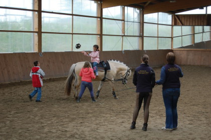Während des Projektes wurden die Kinder wie gewohnt in zwei Gruppen aufgeteilt. Während die eine Gruppe an der Heilpädagogischen Förderung mit dem Pferd teilnahm, wurde die zweite Gruppe in der Trakehner Stube der Reithalle betreut. Nach einer Stunde erfolgte der Wechsel. „Die kleine Gruppengröße und das Zeitfenster von 60 Minuten erlauben eine gezielte individuelle Förderung über das Medium Pferd und bieten den Schülern einen Rahmen in ruhiger Arbeitsatmosphäre“, erklärt Marion Drache, die Vorsitzende des Vereines. „Im Vordergrund steht auch nicht die reitsportliche Ausbildung, sondern der spielerische Umgang mit dem Pferd. Es handelt sich um eine ganzheitliche Förderung der Persönlichkeit.“